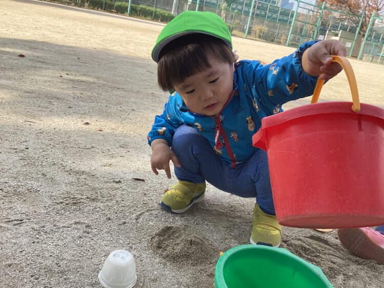 フェンスの隙間から落としてみたり、バケツに入れてサクサクしてみたりと楽しく過ごしました😊