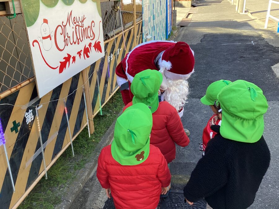 突然の登場に目を丸くしていたお友だちもいましたが、サンタさんとタッチをしたり「また会おうね
