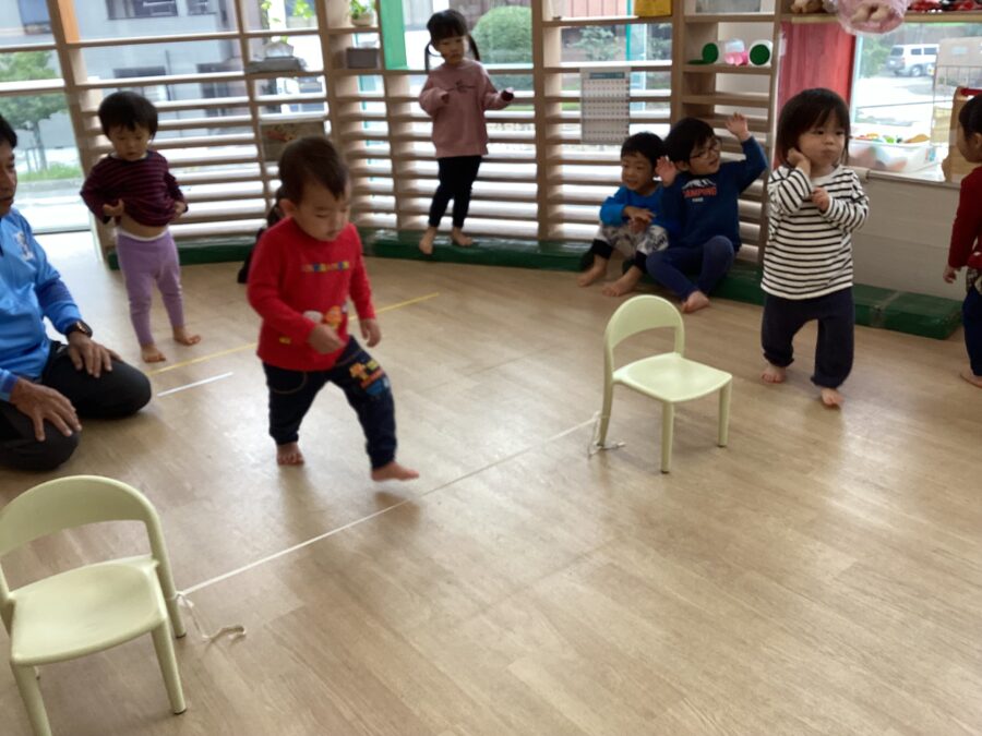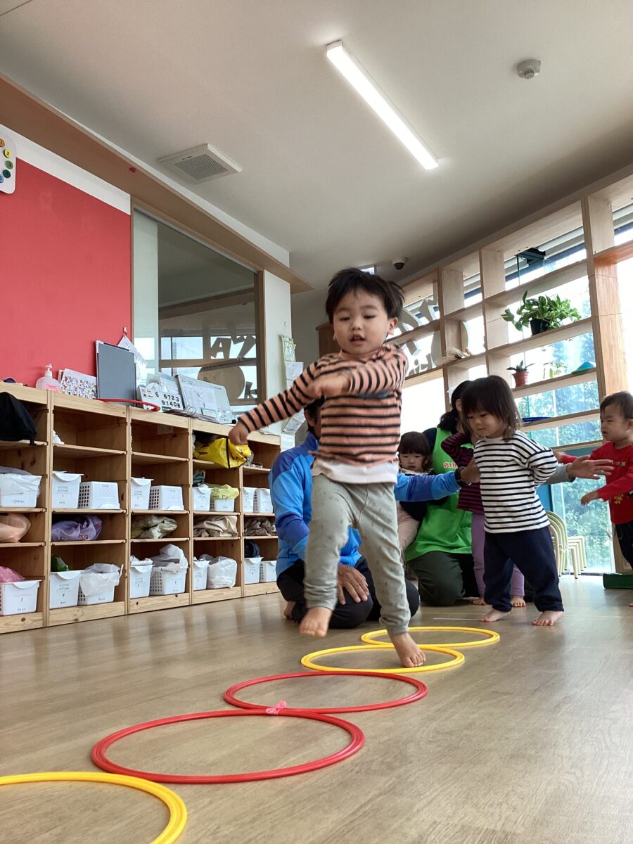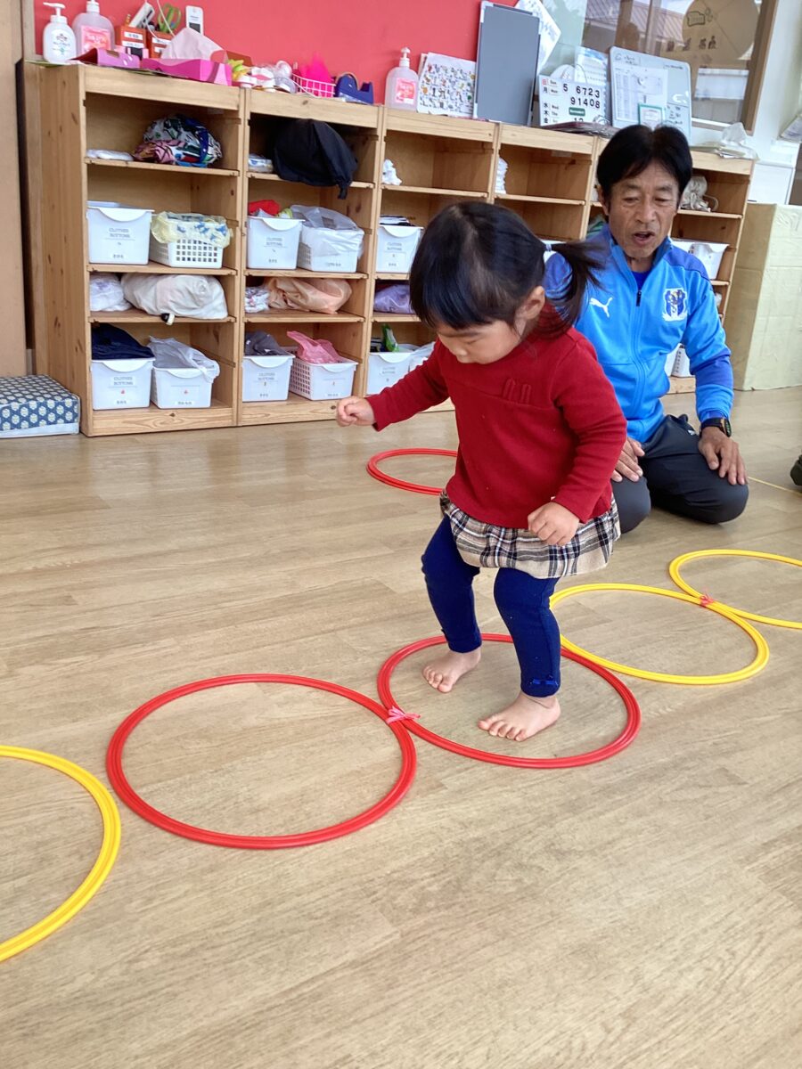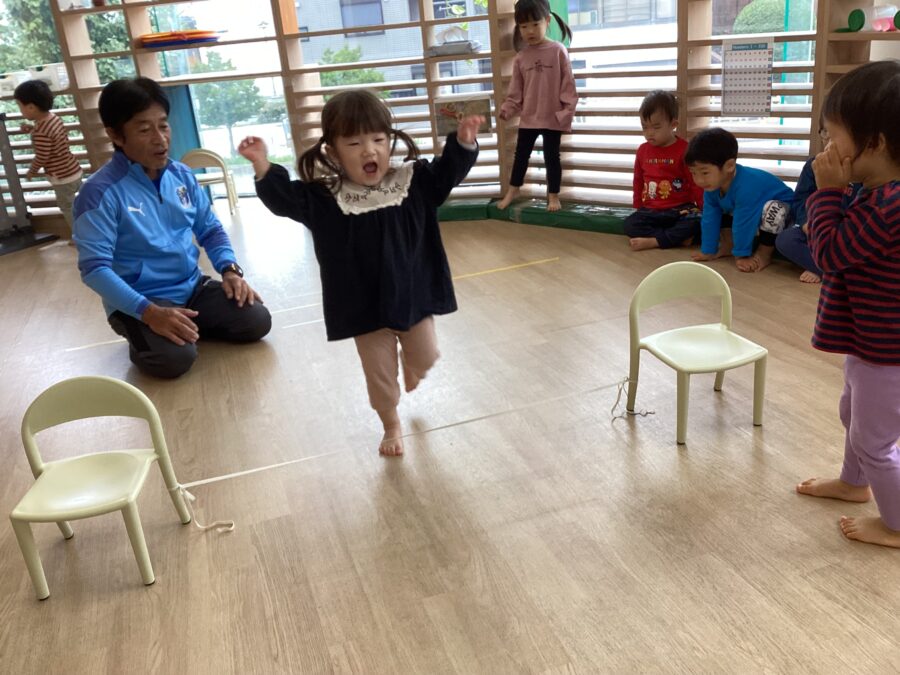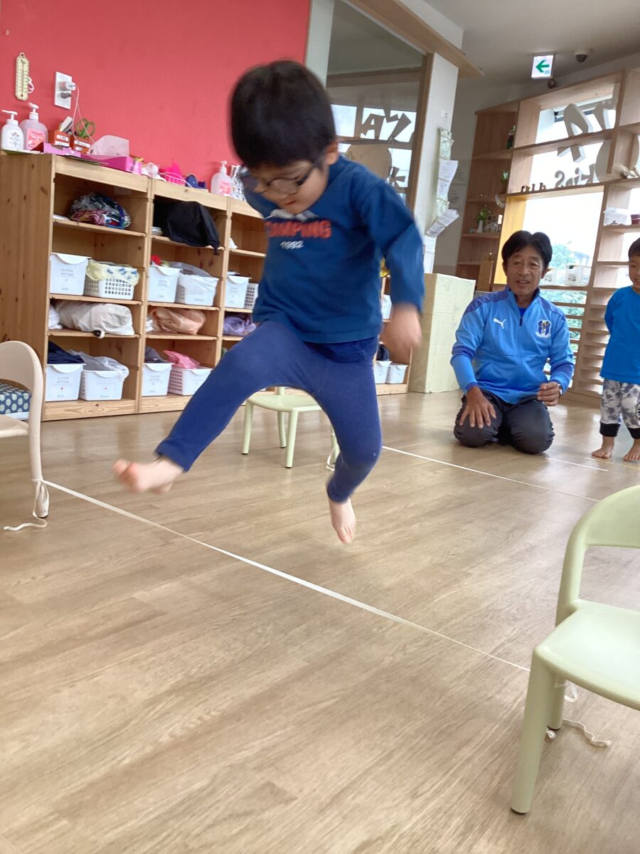 準備体操やかけっこをした後は、大好きなジャンプをして遊びました💨