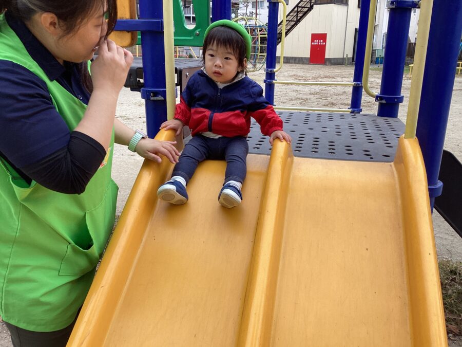 滑っていく感覚が面白く「あっ!あっ!」ともう一回アピールをし、何度も繰り返し楽しんでいましたよ😆