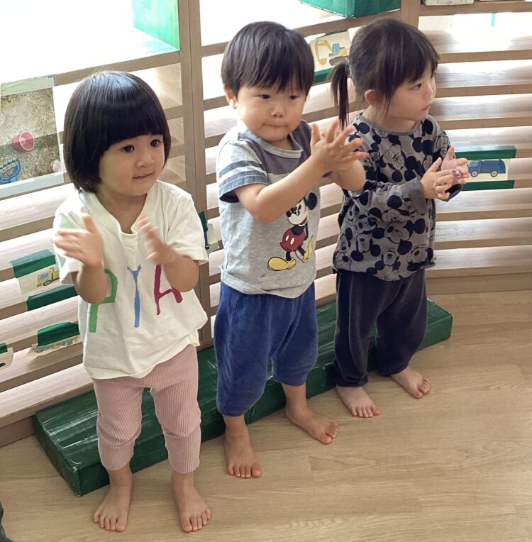 まずは拍手をしながら先生とご挨拶!