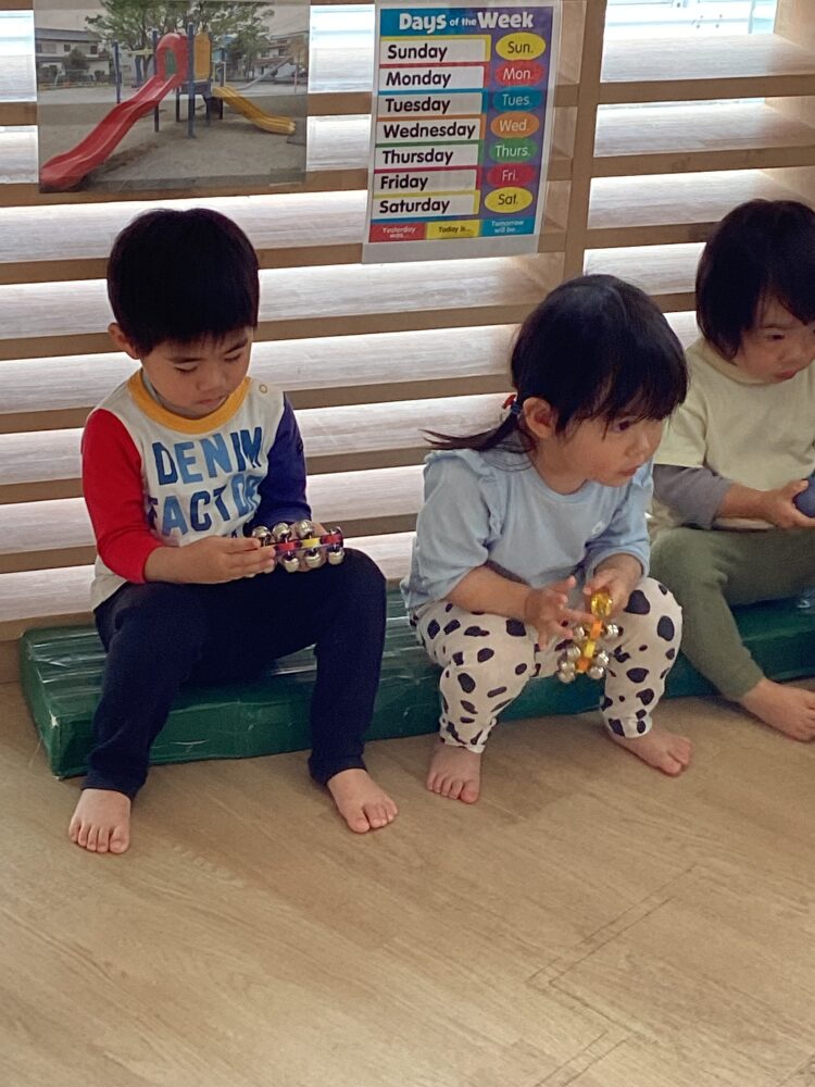 最後は鈴やエッグマラカス使って「おつかいありさん」の音楽で合奏をしました🎵