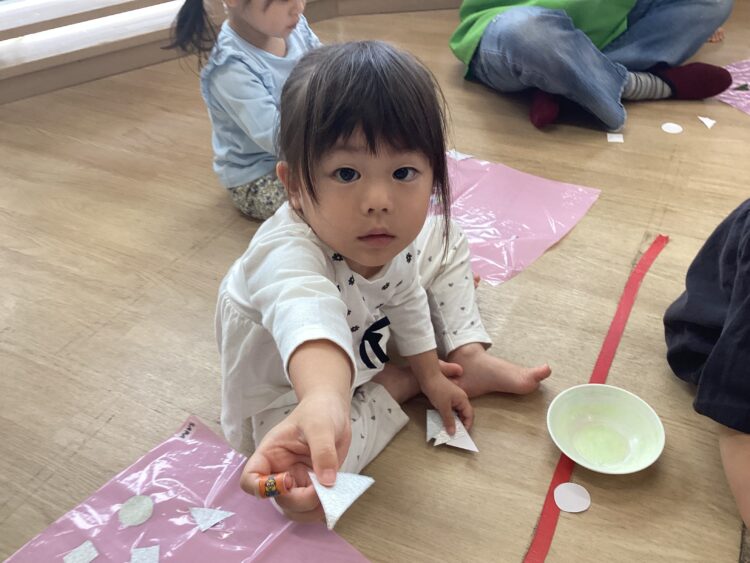 ちゅうりっぷ組さんも、保育者にとってもらったシールをペタペタ✨