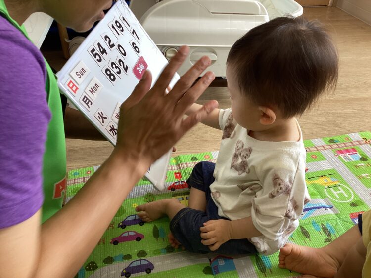 先生の声を聞きながら一緒にカレンダーの磁石を貼るなどして楽しんでいましたよ!