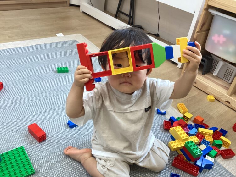 ブロックをつなげてメガネなどを作ったりして楽しみました😄