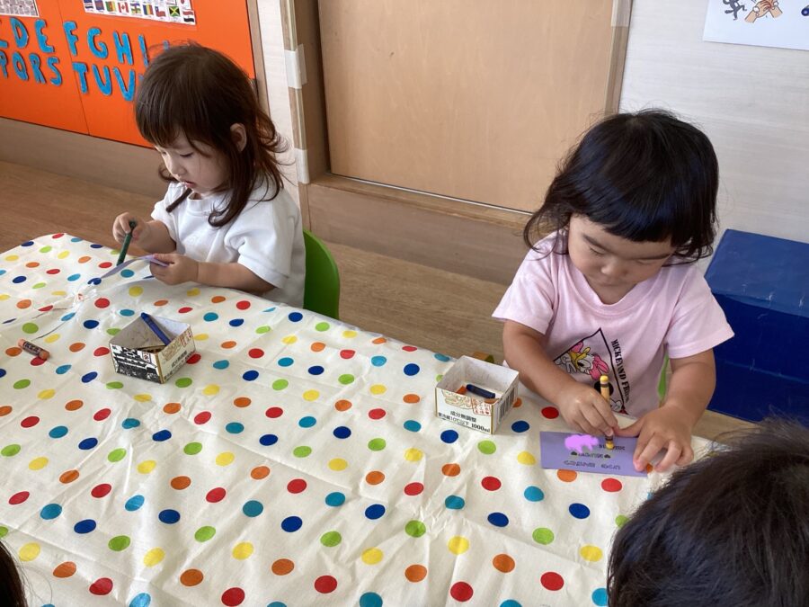 クレヨンで色塗りをしたり、糊付けをしたりと、みんな真剣な表情で製作遊びを楽しんでいましたよ🖍️