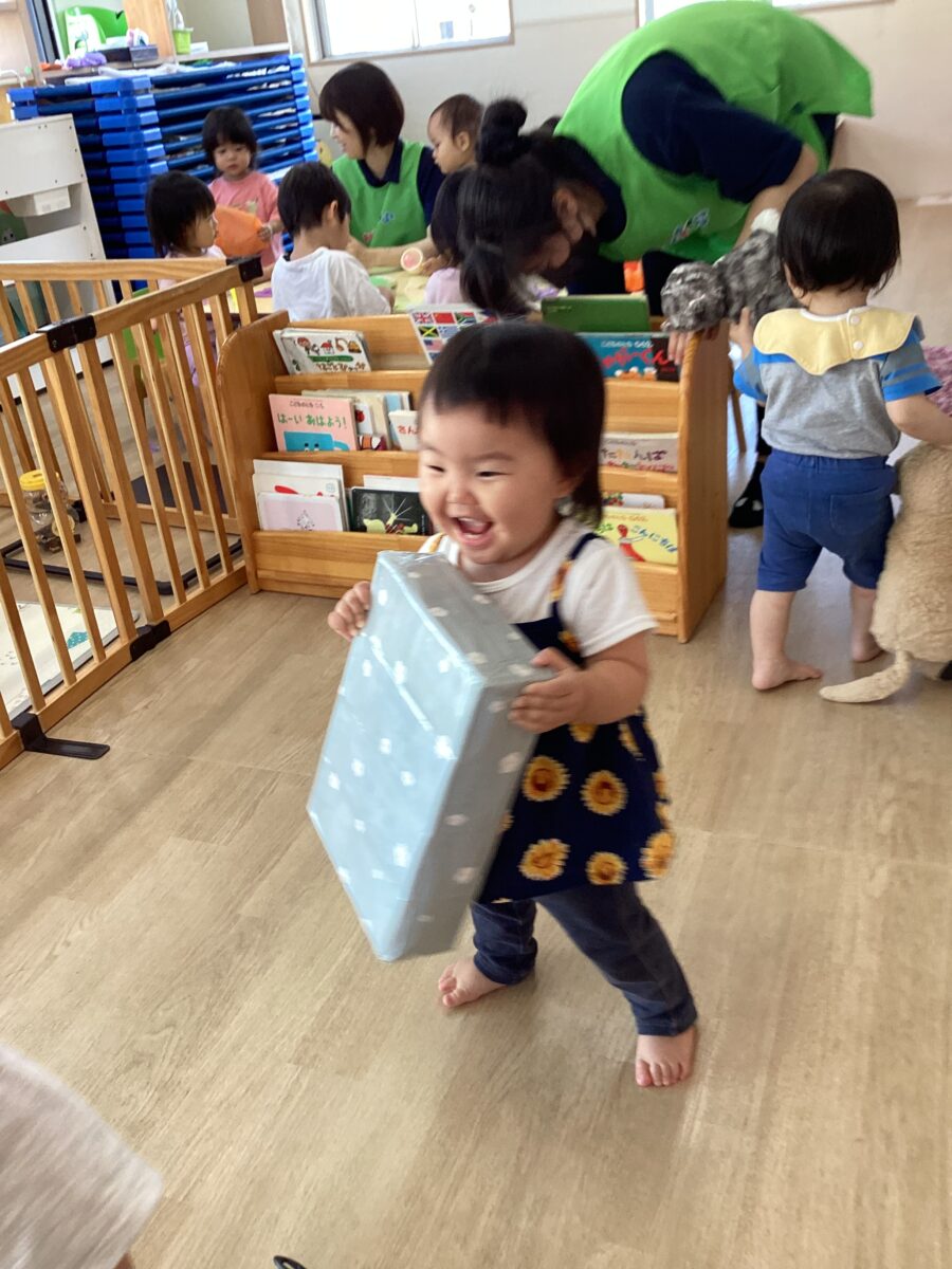自分で好きなおもちゃを見つけて、ロッカーからヨイショヨイショと運んだり、好きなぬいぐるみを抱えて満面な笑みを見せてくれるお友だち☺️
