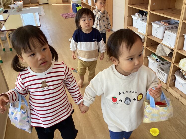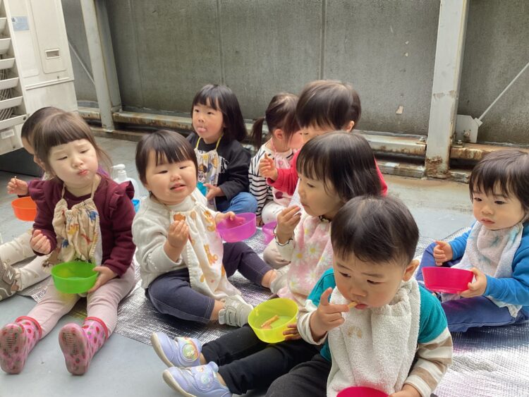 昨日はポカポカお天気だったので、おやつTimeを外で過ごしたお友だち🌸