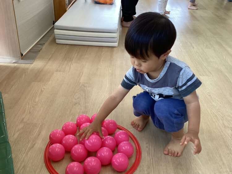 フープの中には同じ色を入れていきます!!ルールが分かると、「どこどこ~??」とみんなどんどんスピードアップしていました👏