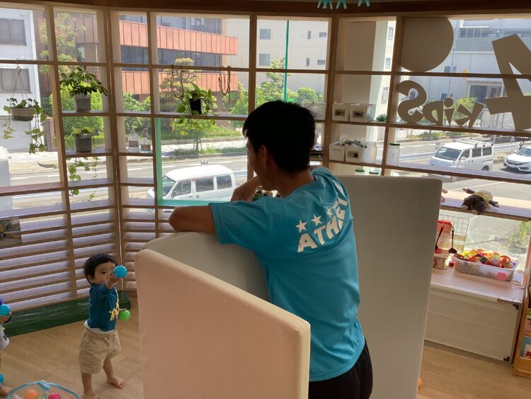 「せんせいと何するかなぁ~✨」とワクワクしながら体操教室が始まるのを待っていた、お友だち!