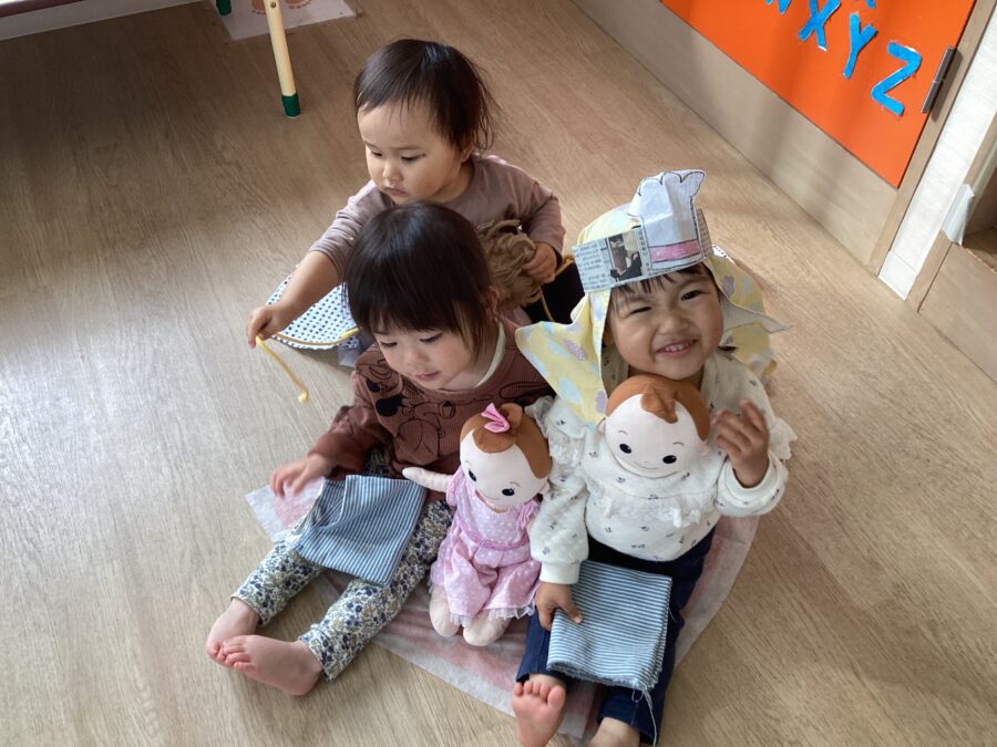 今日もお部屋で遊んでいると、お人形さんのお世話をしているお友だちを発見!