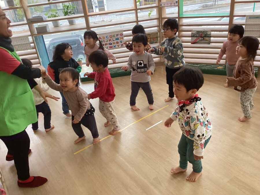 みんな名前を呼んだり、優しくタッチしたりしてお友だちとの関わりを楽しんでいましたよ。