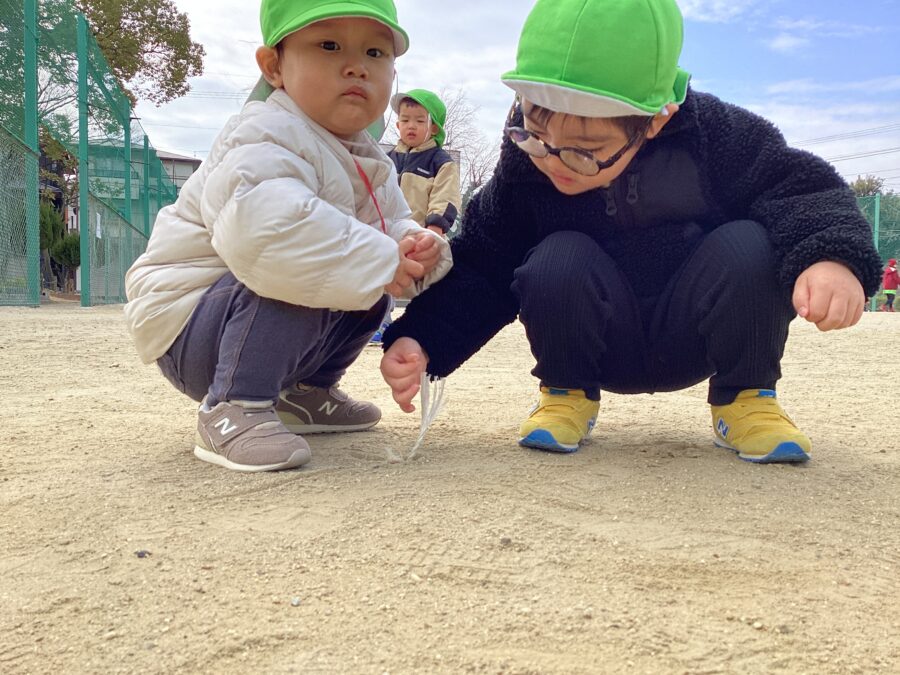 公園に着くと、白い紐を見つけ、「先生、カブがあったよ!」と言って、大きなカブごっこが始まりました✨