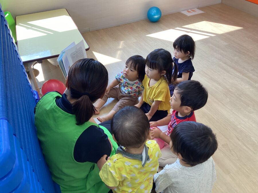 最近はオオカミにハマっているお友だちが多いのですが、今日は「おおかみさん いまなんじ?」という絵本を見ていると、興味津々でみんなが集まってきました📕