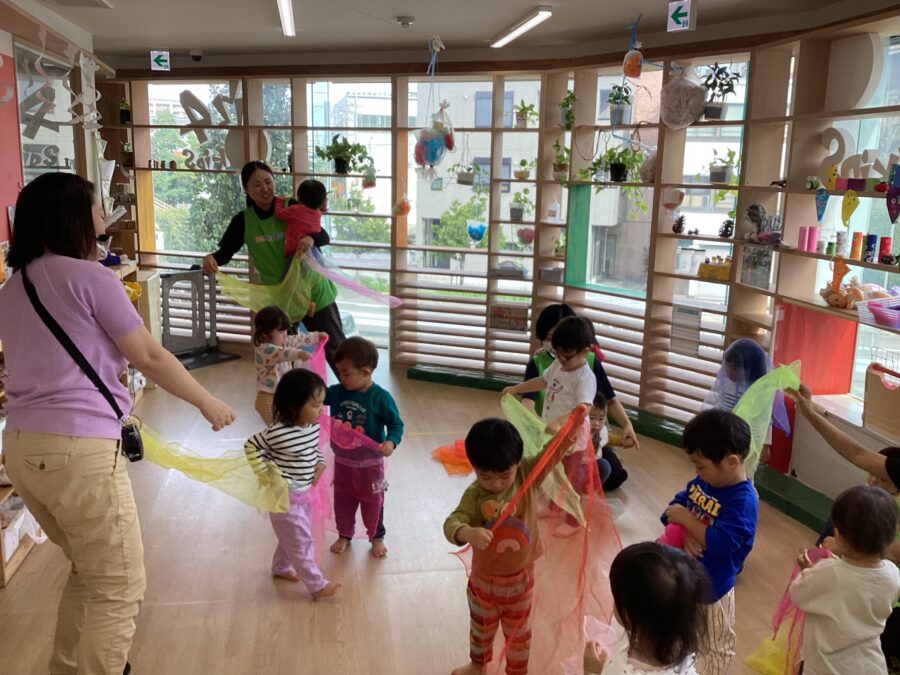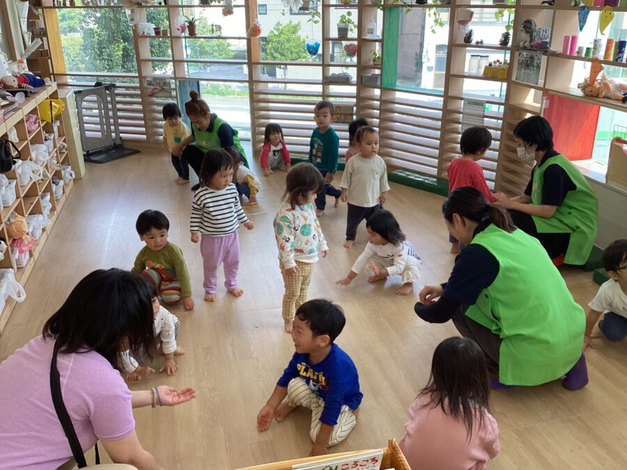 はじめてのたんぽぽ組さんは、お兄さんお姉さんと一緒に参加できて満足気な笑顔が見られましたよ😄