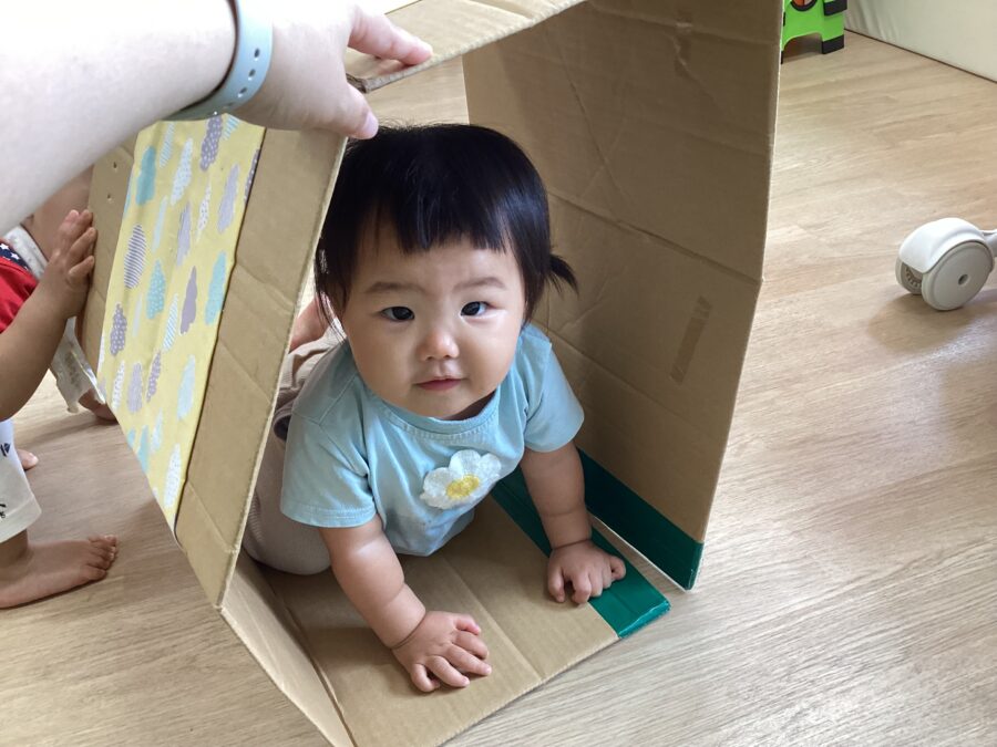 たんぽぽ組のお友だちはトンネルの中を進んだり、