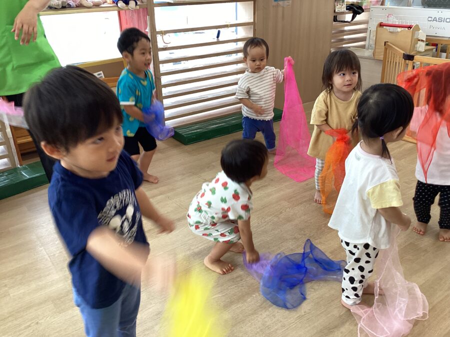シフォン布を上にパッと上げて花火に打ち上げる遊びもしました![]()