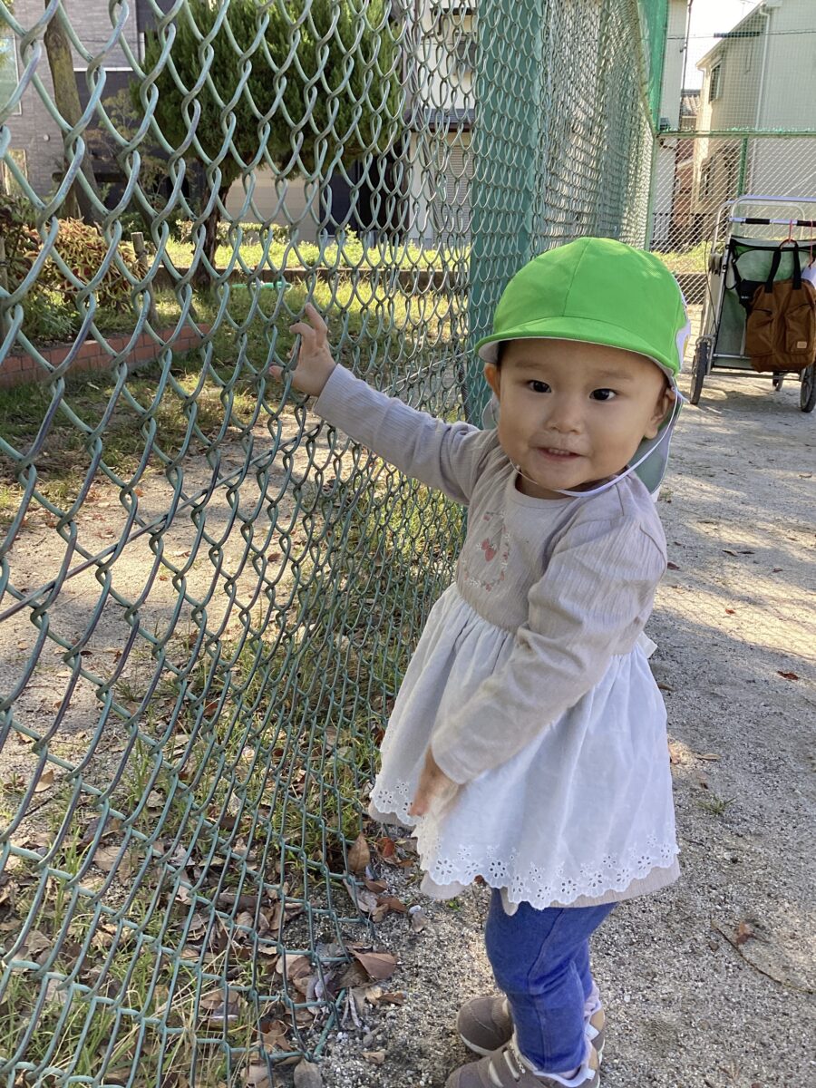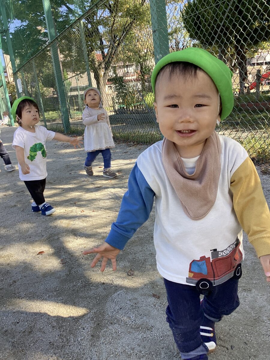 「捕まえた!」と手を伸ばすと輪っかが逃げていくので何度も捕まえようと大はしゃぎで追いかけていた、お友だち!