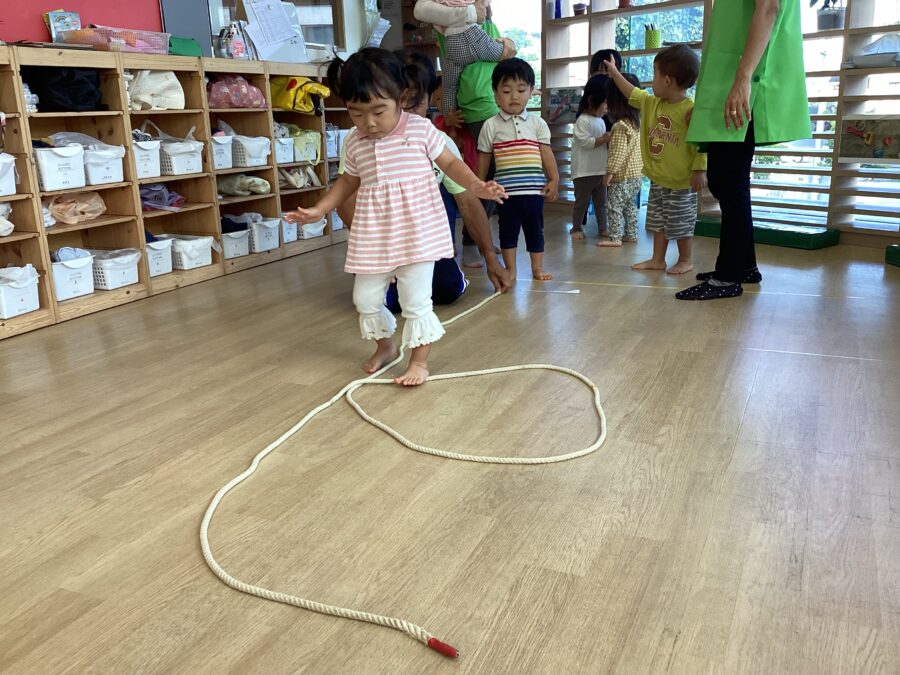 ロープ遊びでは前回より難しいクネクネ道が登場!
