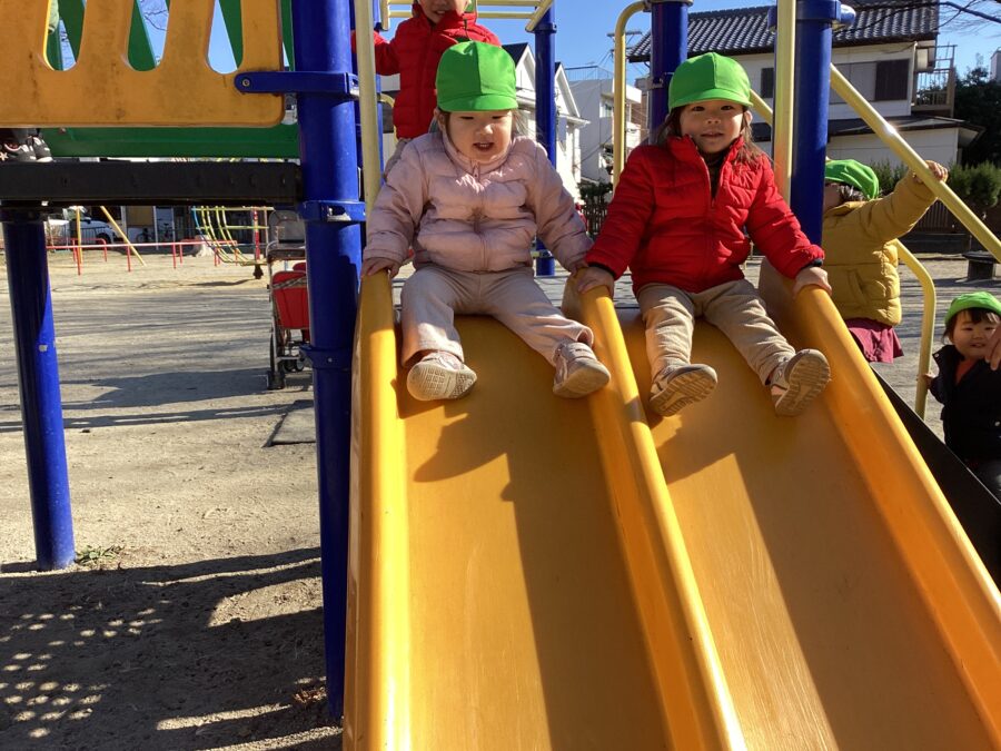 「一緒に滑ろう!」と言って、お友だちが来るのを待ち、2人で並ぶと「1、2、3!」と言ってニコニコで滑り出していましたよ🩷