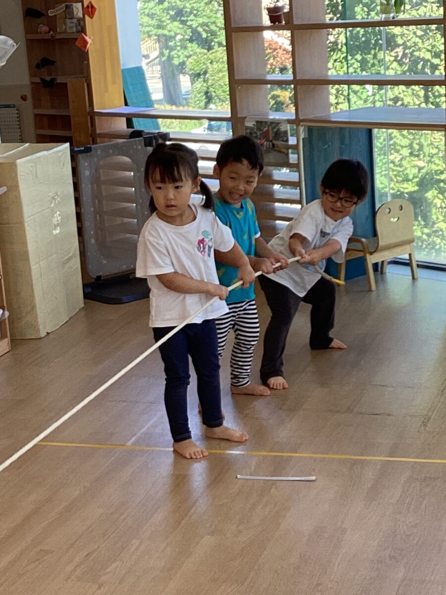 前にロープがいかないように、お友だちと力を合わせてグイグイ引っ張っていましたよ✨