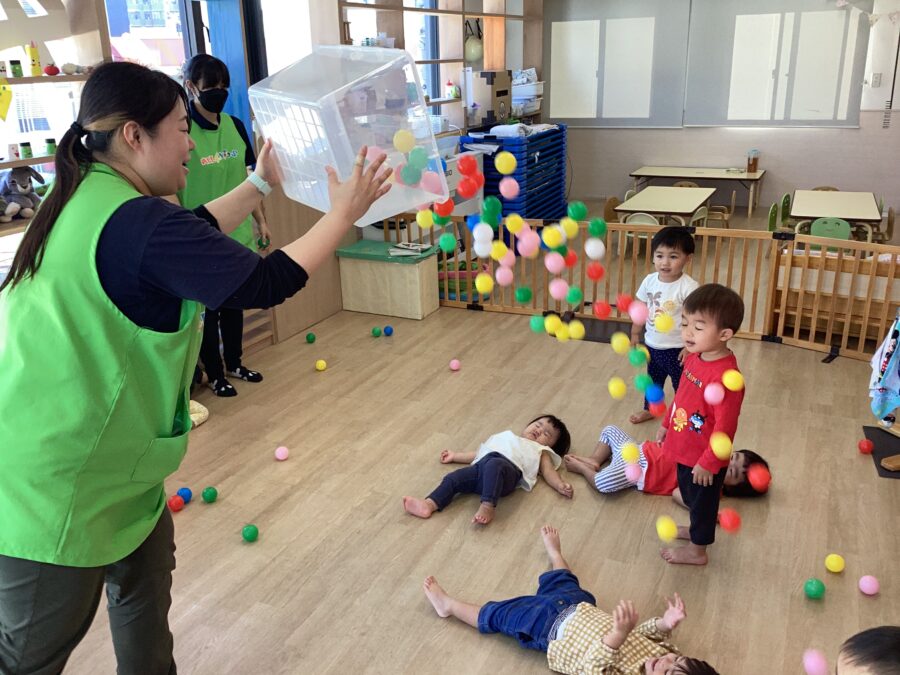 楽しかった体操教室の後は、お部屋の中でボールシャワーを浴びて大はしゃぎでしたよ🥰