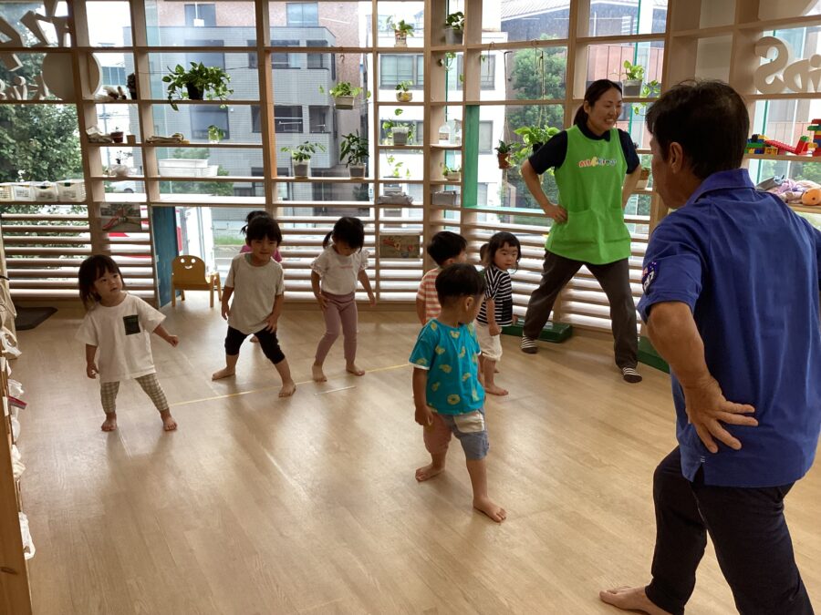 先生と一緒に「1、2、3、4...」と声を出して体操する姿が見られました☺️