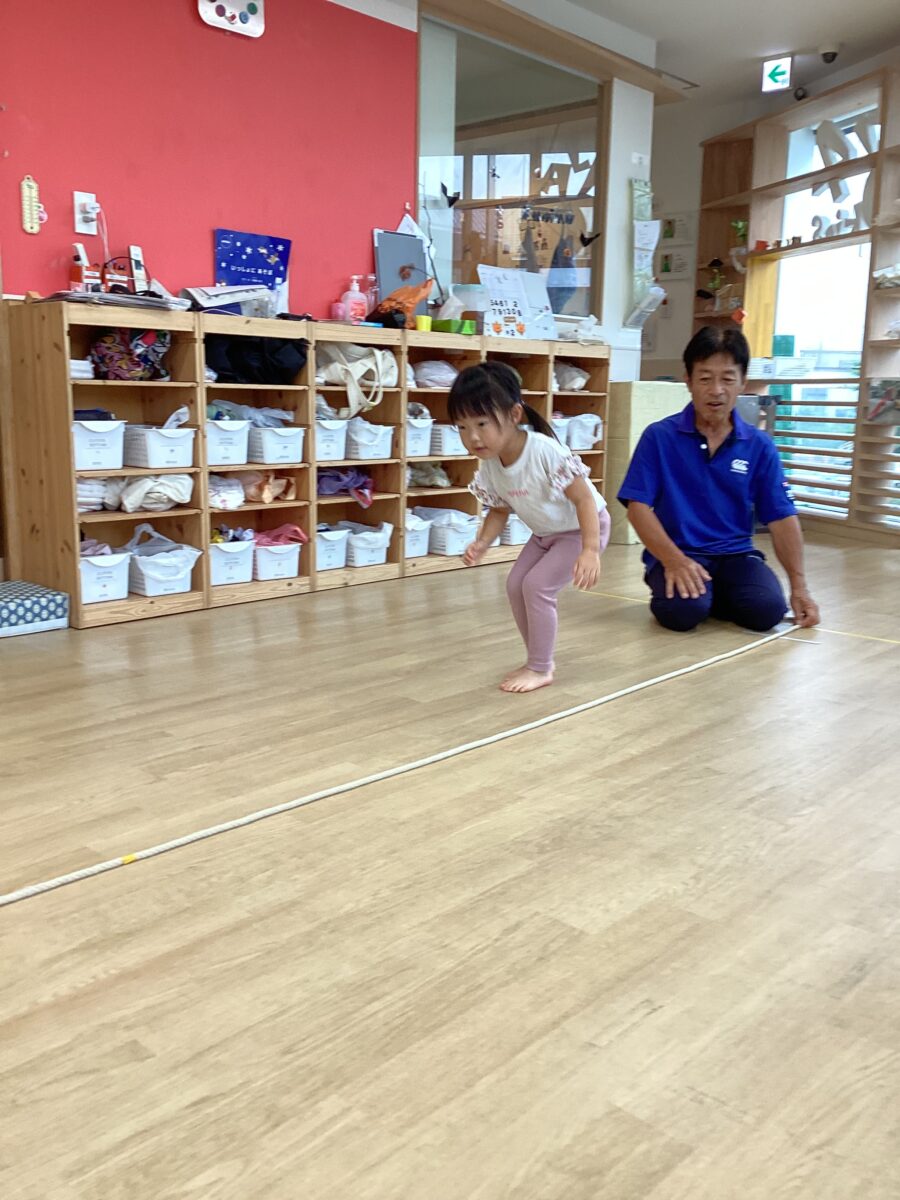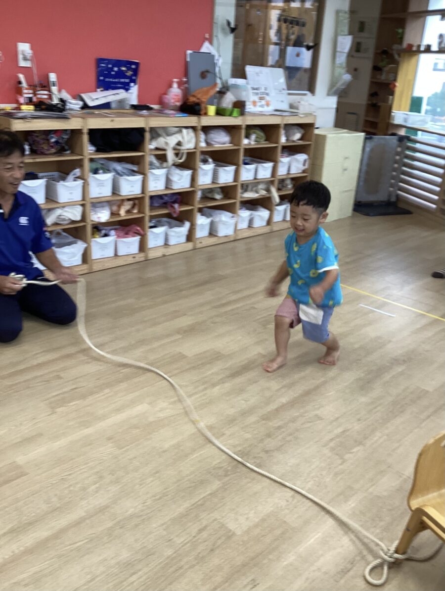 動くロープを見ながら、当たらないように頑張って飛び越えていました👏