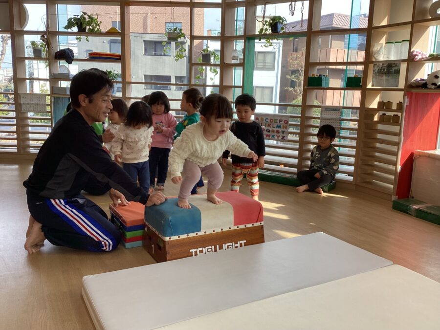 自分なりのタイミングで飛び降りて着地すると、満足げな笑みが見られましたよ😊👏