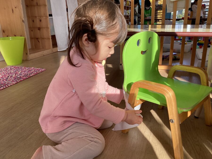 一緒に遊んだおもちゃや椅子、床などを一緒に掃除してくれました🧽