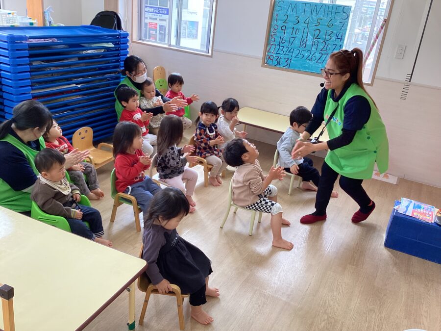 今日のEnglishTimeでは、ついに、たんぽぽ組さんもお当番に‼️