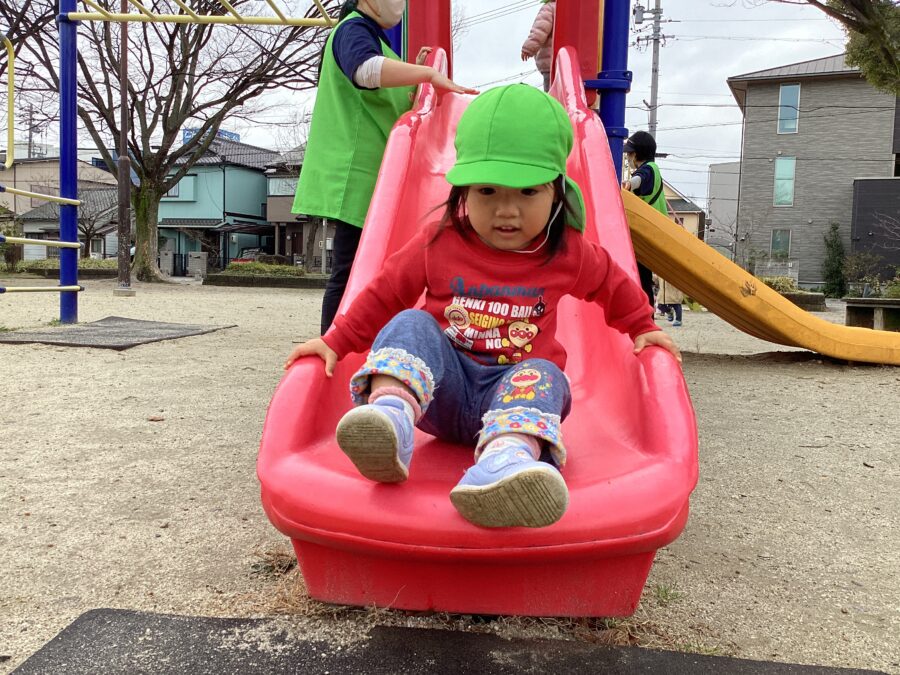 大好きな滑り台で体を動かしたりと元気いっぱい😊