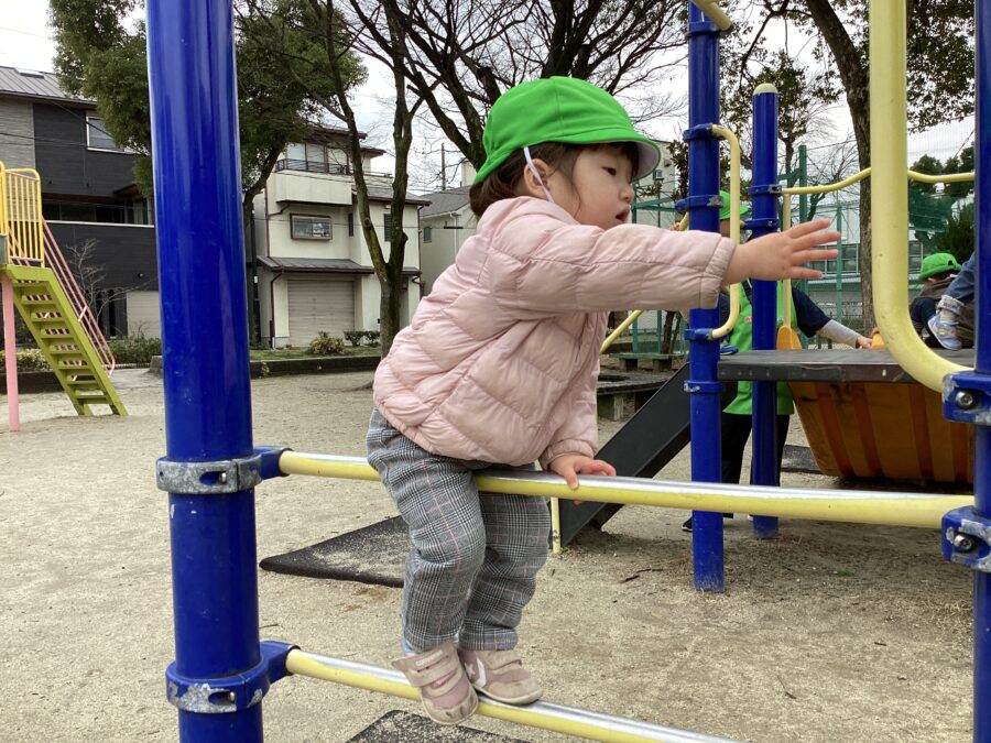 お友だちを呼んで、2人並んで一緒に滑ることを楽しんだり、高いところに登って「ヤッホー!」と嬉しそうに保育者を呼んで、アピールする姿が見られました。