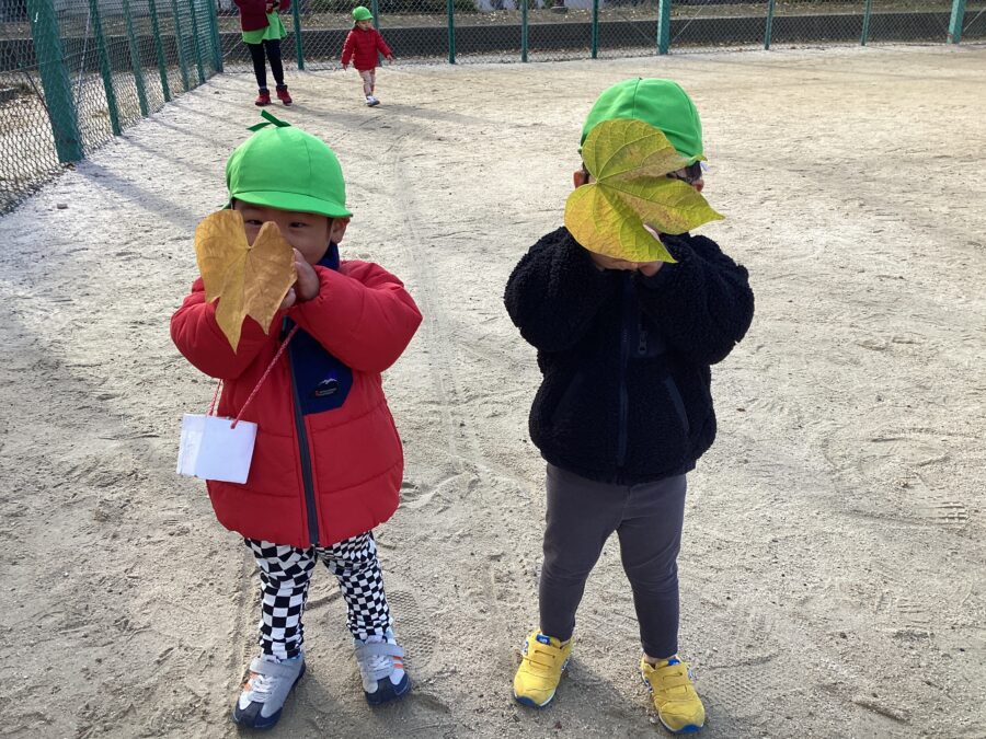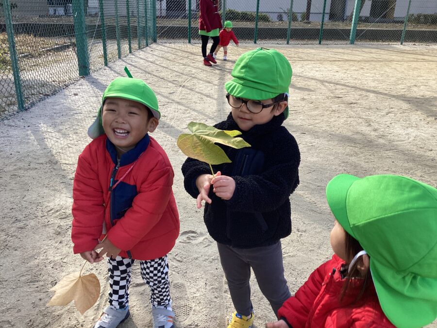 公園に着くと大きな葉っぱを発見🍁