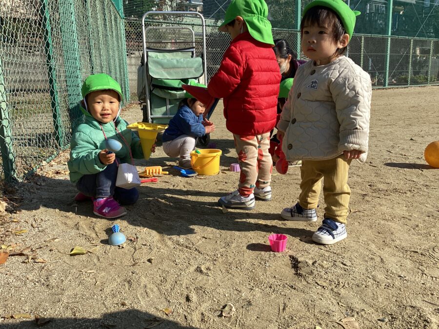 先生と追いかけっこをしたり、シャボン玉を追いかけたり、大好きなお砂場セットで遊びました🪣