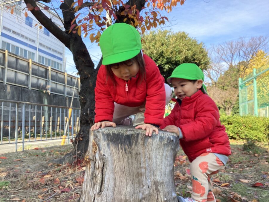 大きな切り株を見つけると、よいしょ、よいしょっと頑張って登る姿が見られました👏