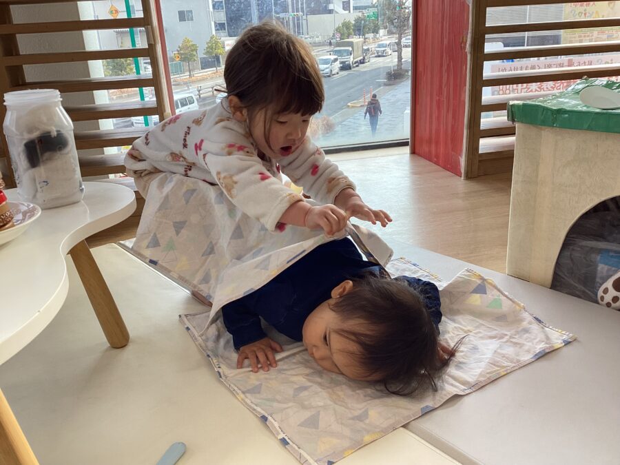 一緒に遊んでいたお友だちが、そっと布団を掛けてあげていましたよ🩷