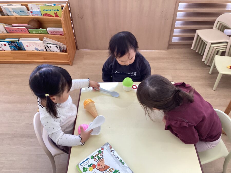 ひまわり組さんたちは食べ物の玩具を集めて「女子会ごっこ」💕
