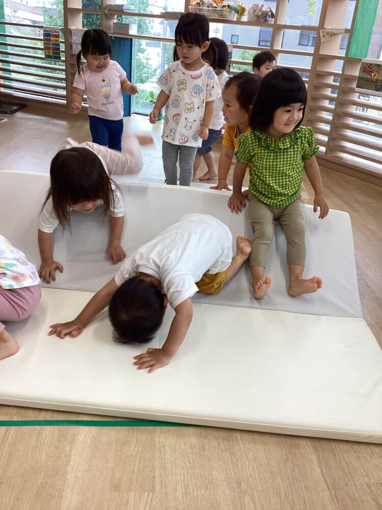 他にも、マットで山を作ると「なにこれー?」と興味津々なお友だち👀