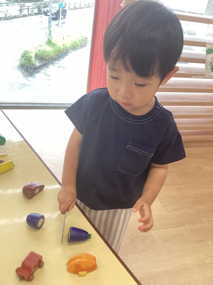 ままごとコーナーでは包丁を使ってちょきん🔪