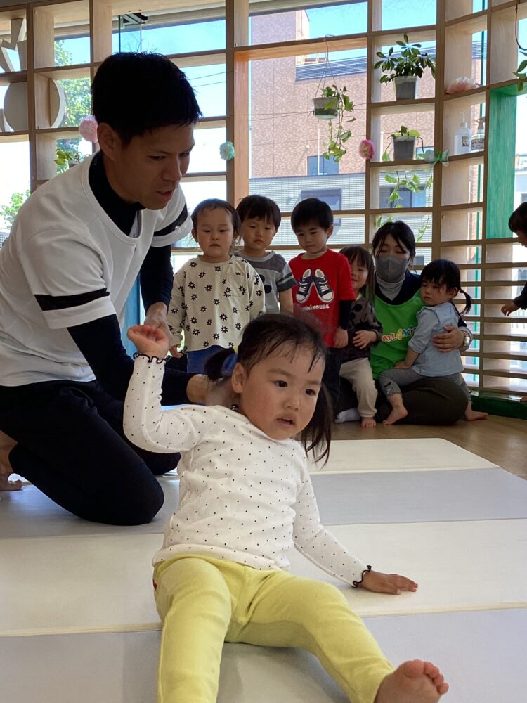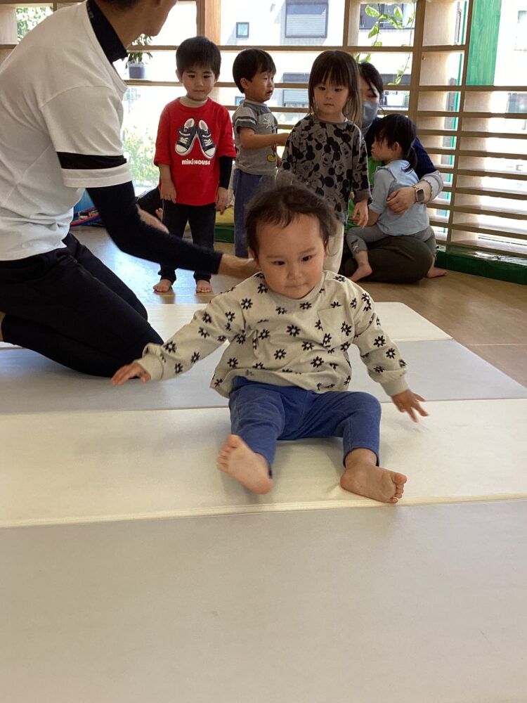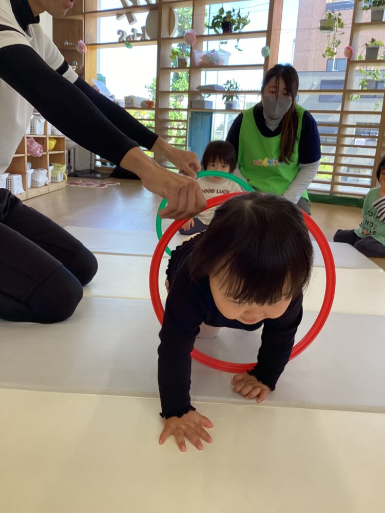 その後はフープも使ってハイハイでくぐったり、でんぐり返しに挑戦したりしました!