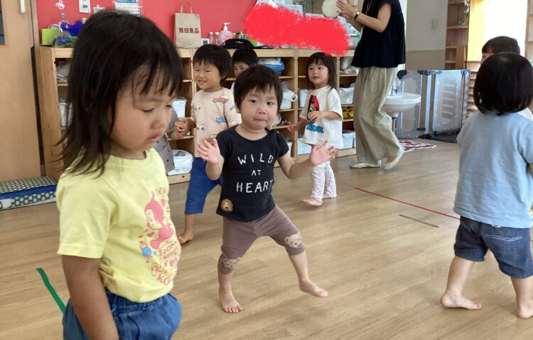 ピアノの音楽に合わせて歩きながら手をたたきます👏