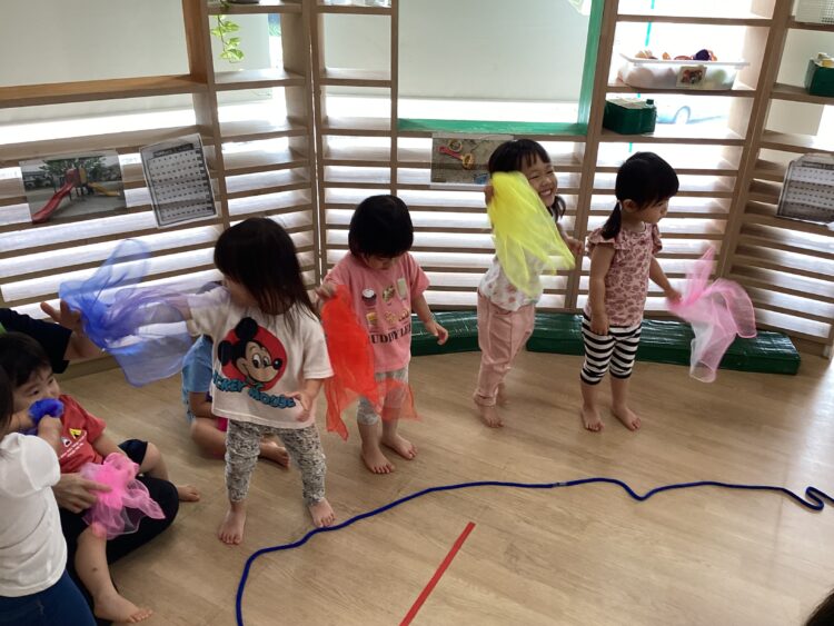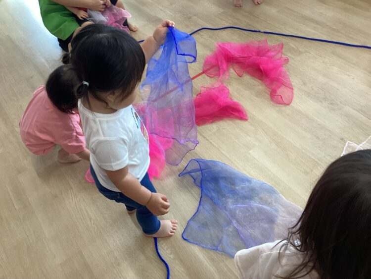 シフォン布を水に見立てて、音楽に合わせて水の動きを表現します🌊