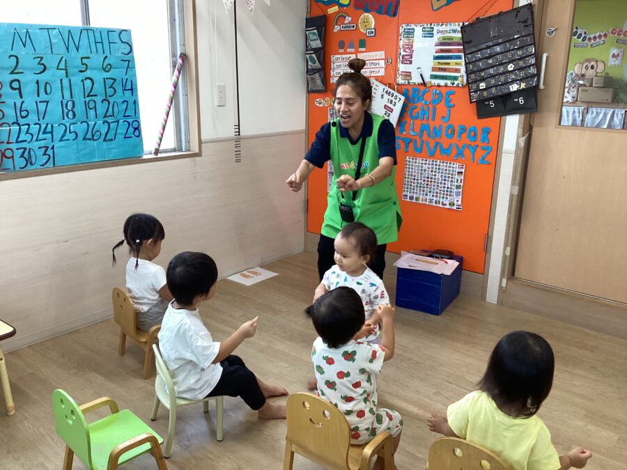大好きな先生と一緒に前に立ち、ノリノリで踊っているお友だち🎵