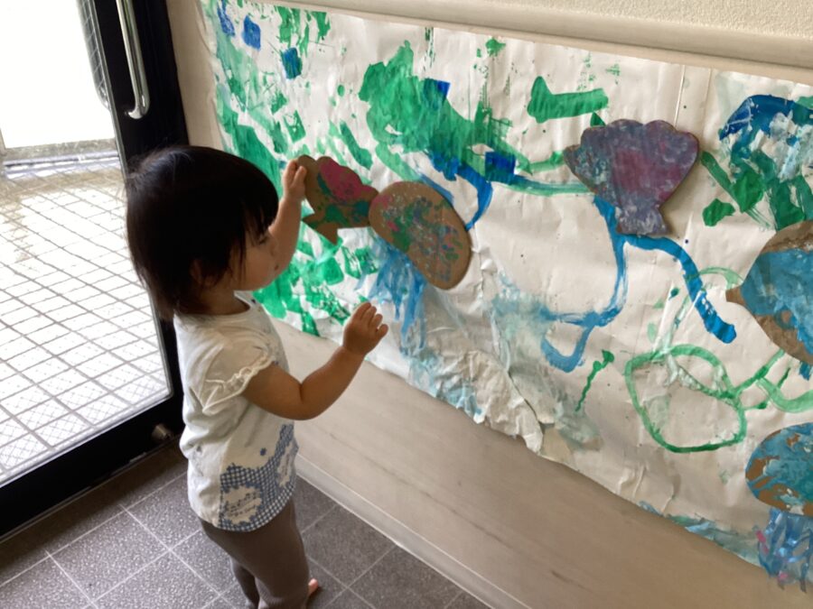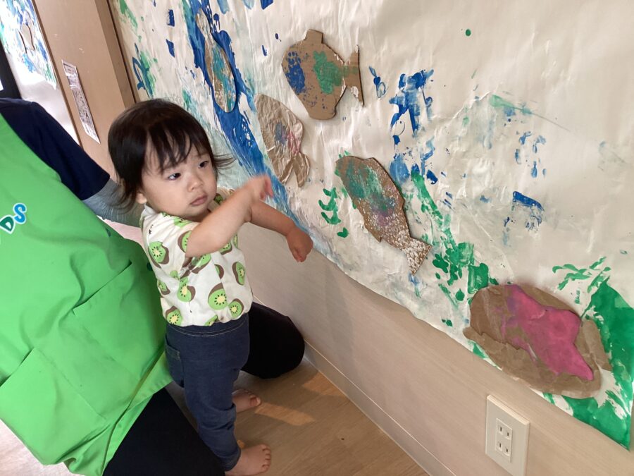 「あっ!」と指差し、自分で貼ったお魚を満足気に見ていましたよ