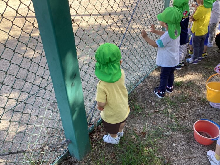 「なにがはじまるの?」「なんだろう?」と、興味津々なみんなはフェンスに張り付いて見入っていました👀