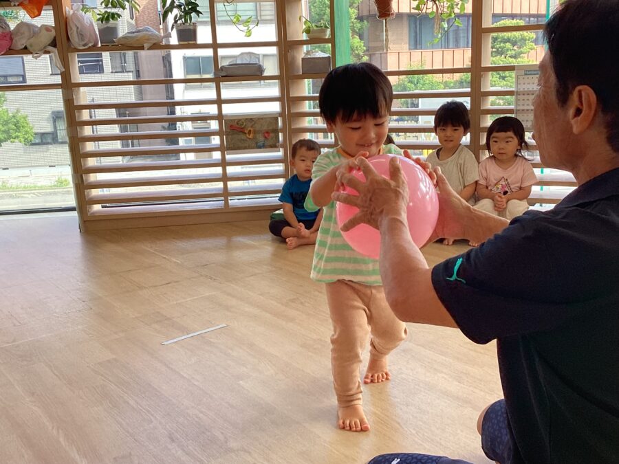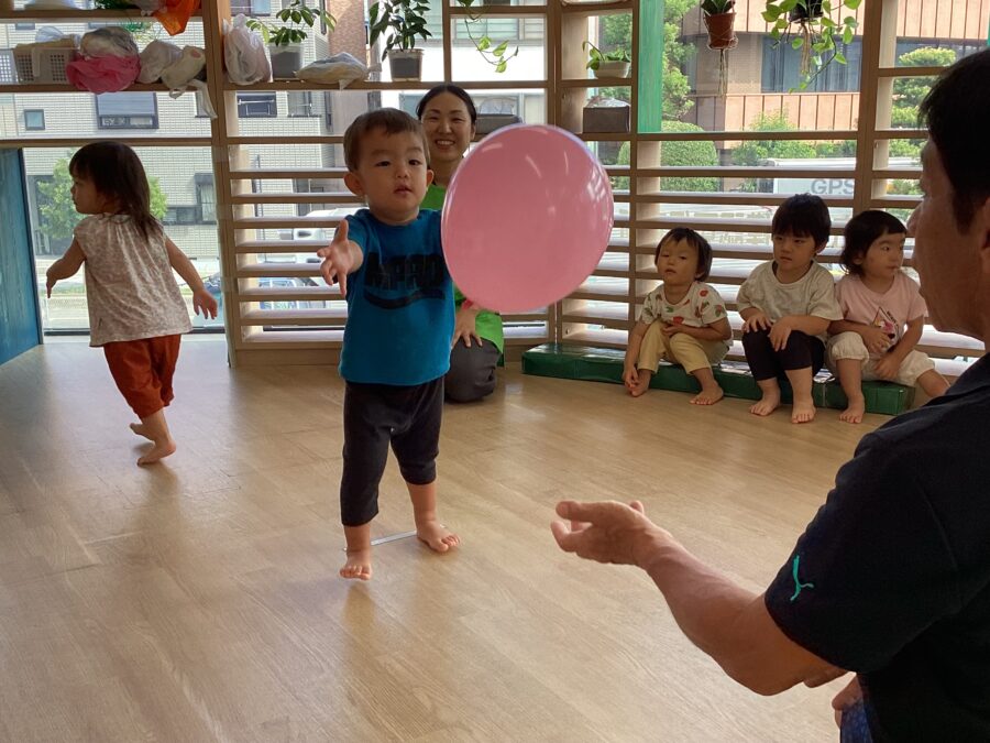 先生が投げた風船を、見事キャッチしていましたよ👏