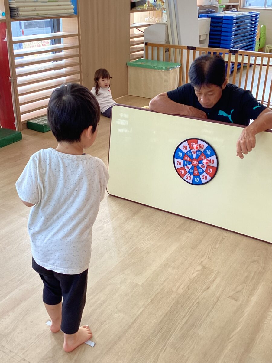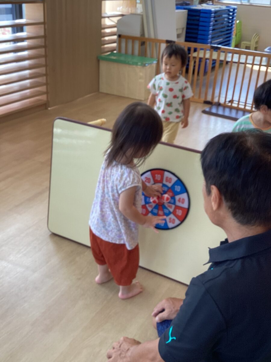 本来は投げるのですが、ちゅうりっぷ組さんは的に近づいてそっとつけに行く姿が見られ、ほっこり🤭