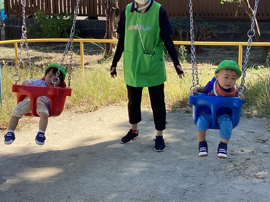 ブランコに乗ったり、公園内を散策したり🍂保育者と一緒にてくてく歩き、体を動かしました。