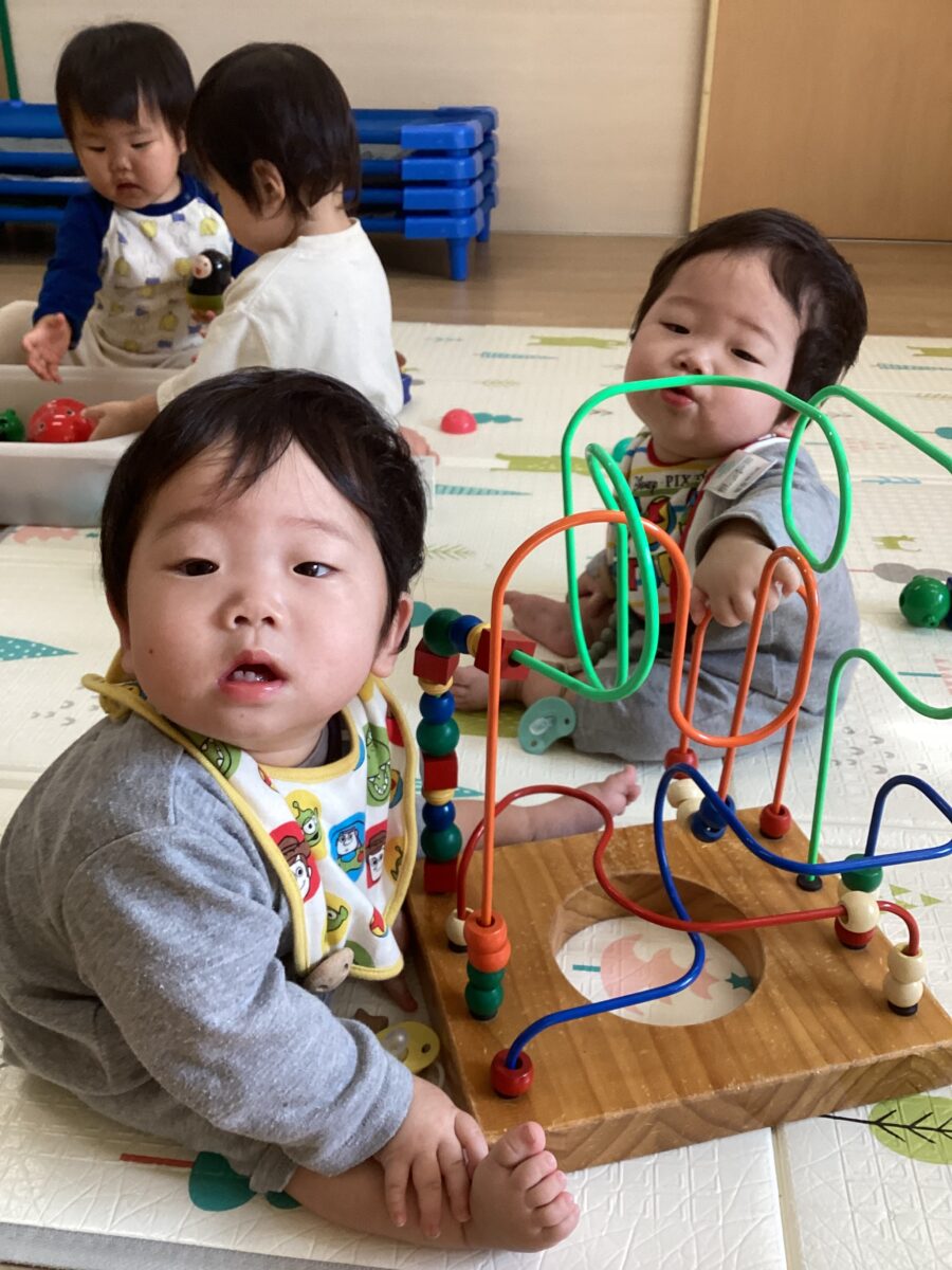 お部屋でも玩具を使ったり、マットで遊んだりして楽しく過ごしました![]()